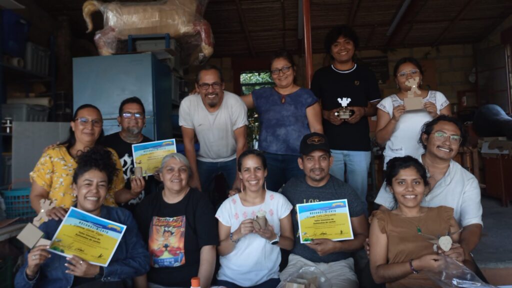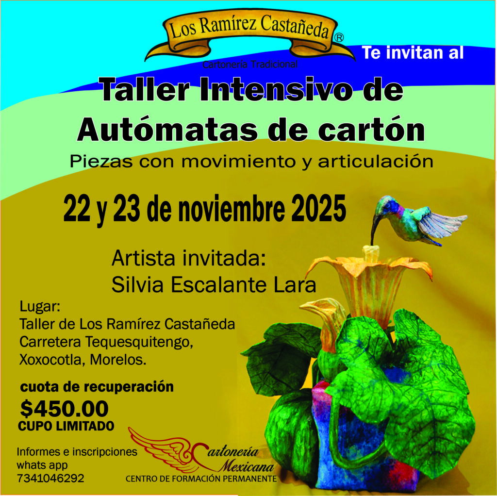 Cómo muchos de ustedes saben, hace casi treinta años y de manera autodidacta comenzamos a experimentar con el papel y el engrudo, conforme los años pasaban no dejábamos de asombrarnos de la riqueza cultural de nuestro oficio y de lo diverso de sus procesos técnicos. Hoy en día y ante el auge de la cartonería como expresión popular hemos comenzado a sistematizar e impartir asesorías y talleres compartiendo no solo lo aprendido y desarrollado de nuestro trabajo diario, sino invitando también a otros artesanos que tienen una gran propuesta técnica en su trabajo. Las actividades están orientadas a la población en general, a artesanos y artistas interesados a mejorar sus procesos, conocer las diferentes técnicas que se usan en la cartonería tradicional. De esta forma le aportamos un granito de arena a la mejora y profesionalización del oficio de la cartonería en nuestra región.